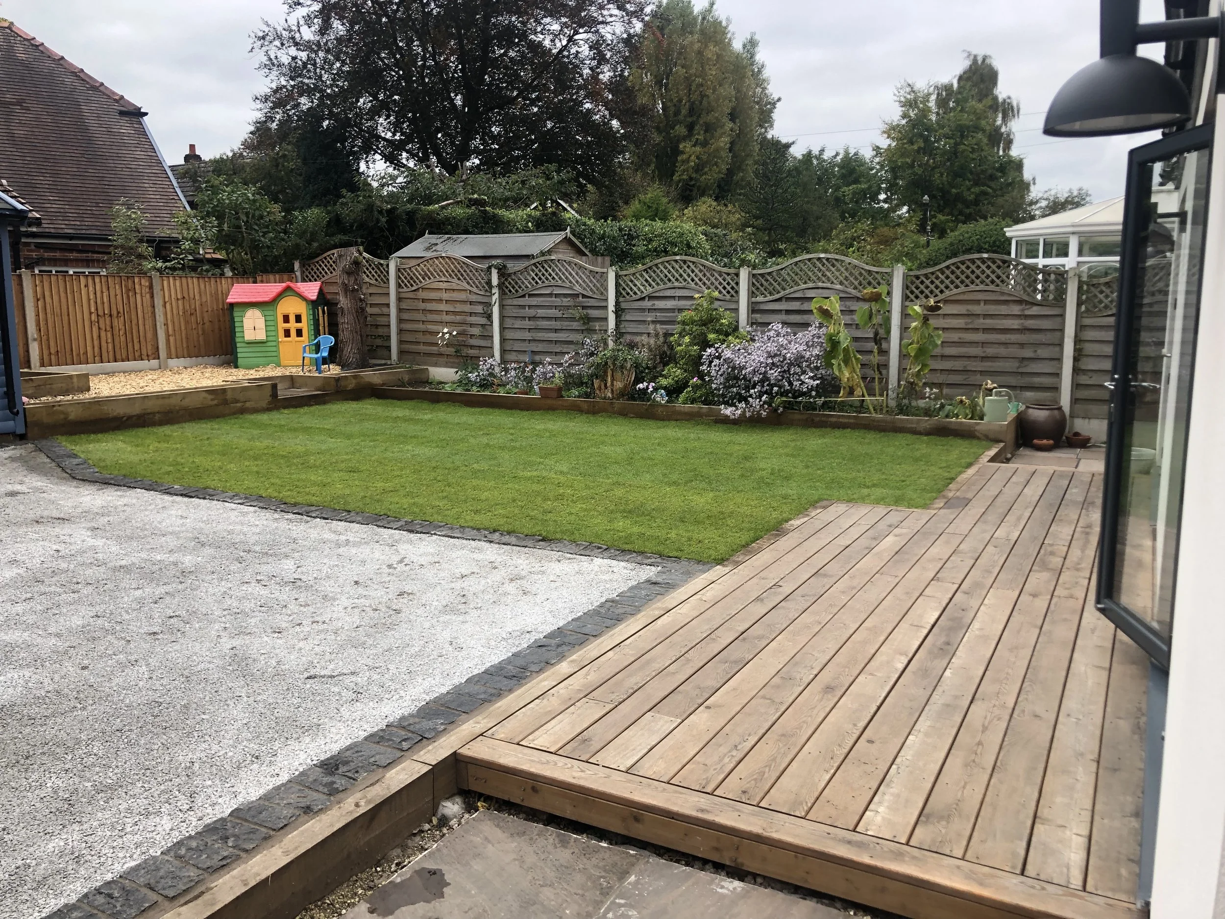 This family garden incorporates a decked terrace for morning coffee/evening g&tâs and pergola dining area, providing sun and shade at different times of day. Ample play opportunities are provided through extended lawn, play area and resin bound surface for scooters and such.